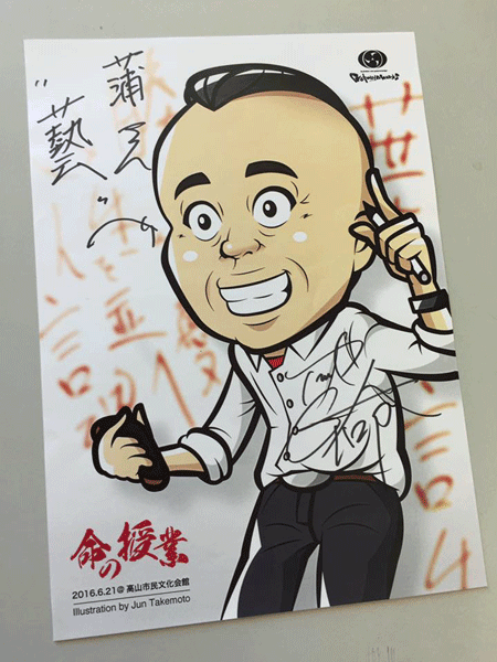 飛騨高山で開催された落語会で、立川志の輔 師匠の落語を生で拝聴しました。僭越ながら楽屋へもお邪魔させていただき、この日のために制作した似顔絵をお渡しさせていただきました。コピーには直筆でサインをいただき感激です。
